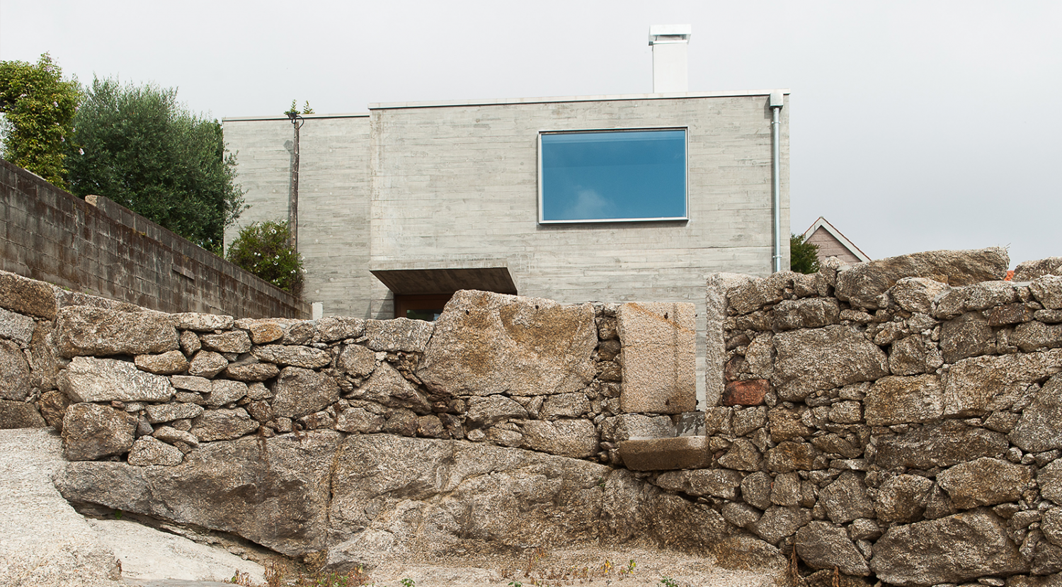 The arrival to the house takes place through the remains of an existing building in the lower part of the plot, the starts of its walls and a large rock are used as access zone. Towards this area, the house opens two gaps, the entrance, which is protected by a concrete overhang, and a window seat that allows a panoramic view over Bueu from the master bedroom.